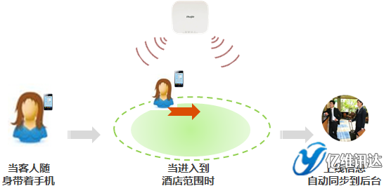 銳捷認(rèn)證系統(tǒng)提供標(biāo)準(zhǔn)的接口,可以將客人的上線信息自動(dòng)同步到酒店的后臺(tái),后臺(tái)可通知門童、前臺(tái)、大堂經(jīng)理,某某客人來了。