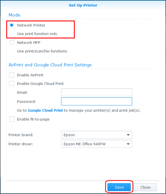 進(jìn)入 DSM 中設(shè)置 USB 打印機(jī)后,您可用 Synology Assistant 將打印機(jī)添加到網(wǎng)絡(luò)。