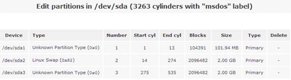 然后點(diǎn)擊磁盤(pán)“/dev/sda”,系統(tǒng)會(huì)顯示當(dāng)前磁盤(pán)的詳細(xì)分區(qū)信息。如圖