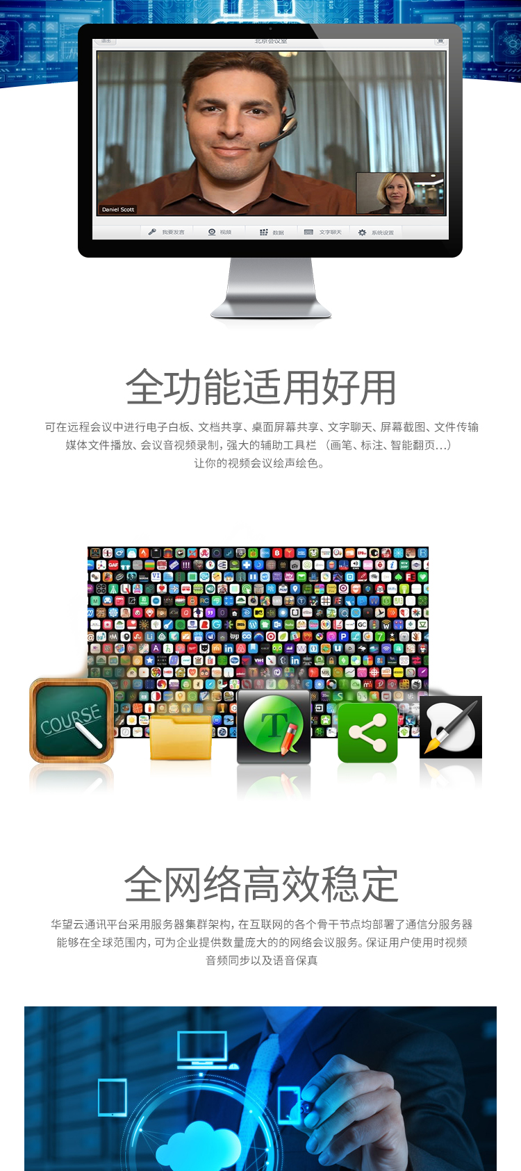 功能齊全,滿足云會(huì)議、云課堂、云培訓(xùn)等多領(lǐng)域應(yīng)用需求。